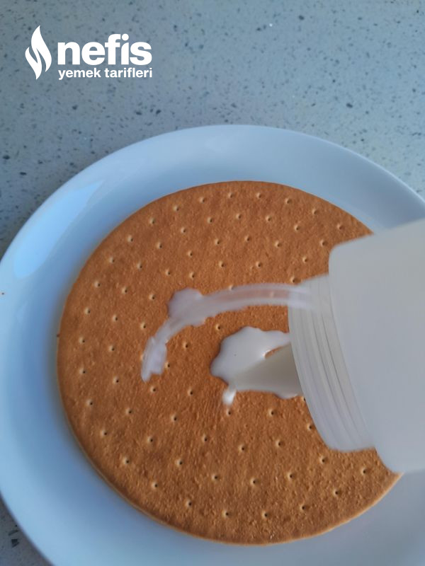 - Bisküviyi servis tabağına alalım sütle ıslatıp üzerine puding yayalım.