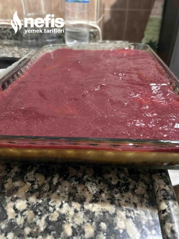 7. Ilık hale gelince chesecakein üzerine dökelim.