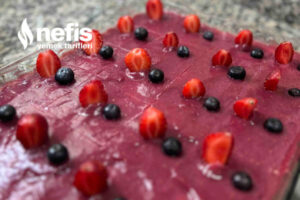6. Jeli için çilekleri ve yaban mersinini yıkayıp sos tavasına alalım biraz su ile birlikte pişirelim ve blendır ile bir kaç bız bız yapalım güzelce çekince şekerini ve nişastasını da ekleyerek pişirelim (sürekli karıştıralım ki tabanına tutmasın )