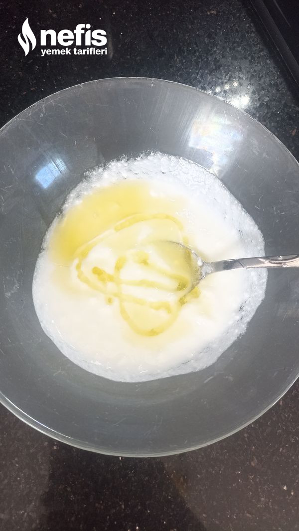 2. Başka bir karıştırma kabına ılık süt, ılık su, toz şeker,mayayı ekleyip karıştıralım.