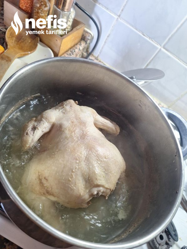 - Bütün tavuğu güzelce temizleyip tencereye su tuz ek edip maks 20 dk eşit kaynatın.