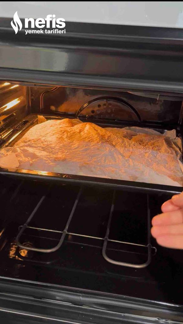 - Önceden ısıttığımız 200° fırında yarım saat yağlı kağıtla pişirelim kalan yarım saatte de üzerindeki yağlı kağıdı alıp kızarana kadar pişirelim servise hazır. Afiyet olsun.