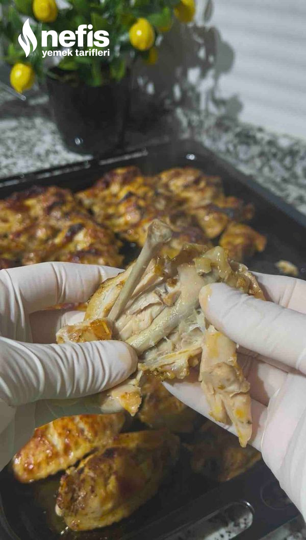 - Sosu için; tüm gereçleri ekleyip karıştıralım, tavuklarınızı sırayla ekleyelim hepsini teker teker baharatlarla özleştirelim tepsiyi ıslatalım, tavukları dizelim, üzerine yağlı kağıdı ıslatıp yerleştirelim.