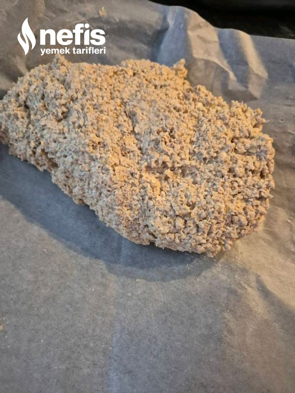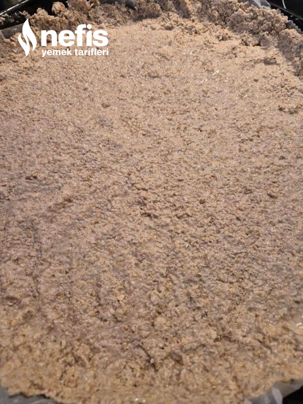 (ele yapışması olağandır un olmadığı için). - Tepsiye yagili kağıt serdikten sonra elimizi yavaşça ıslatarak tepsiye yayalım 1 cm kadar tepsinin yanlarınada yayalım.