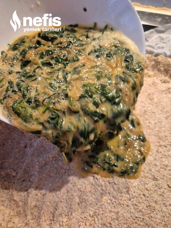- Yumurtaları çırptıktan sonra sütü ve ıspanak karışımını ek ederek karıştırdıktan sonra.