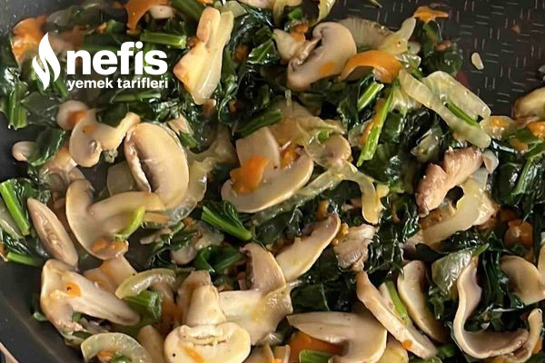 - Daha evvelden sapları ile birlikte doğradığımız mantarları zerzevat sotemize ekliyoruz.