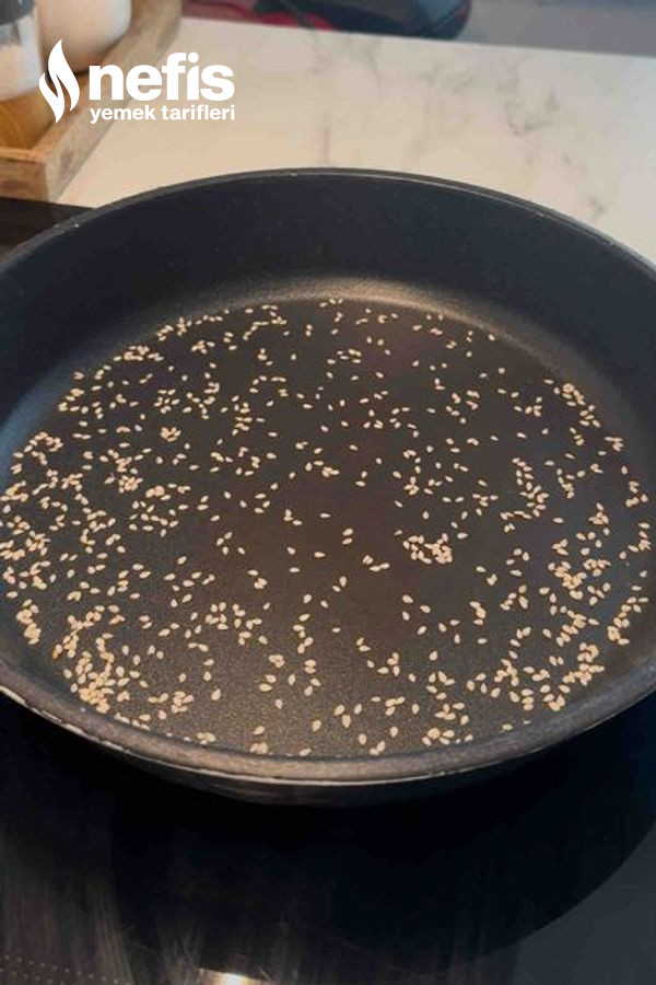 - Yapışmaz bir tavayı yağ eklemeden ısıtın. Susamı tavaya eşit halde serpin.