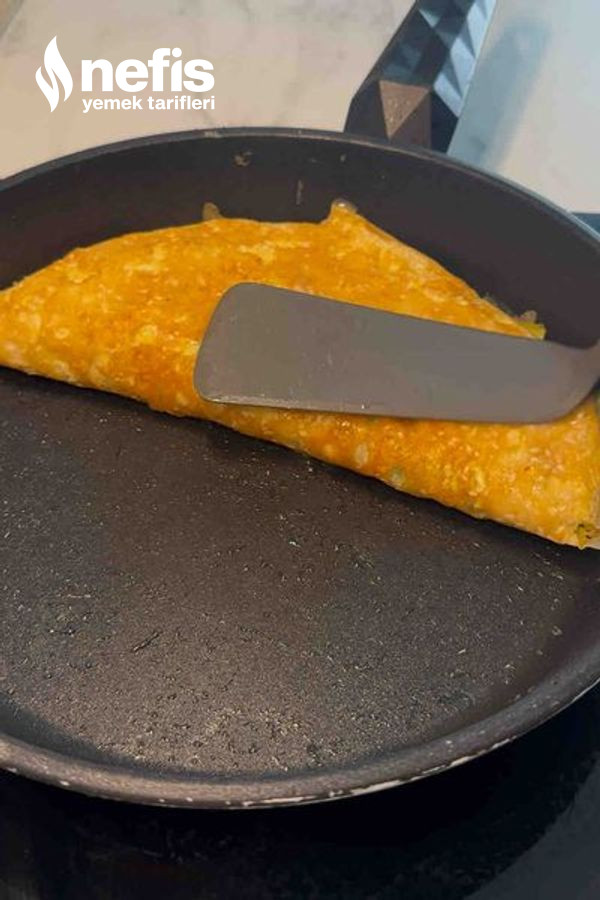 - Son olarak omleti yarım ay formunda katlayın ve çabucak servis yapın.