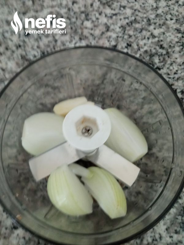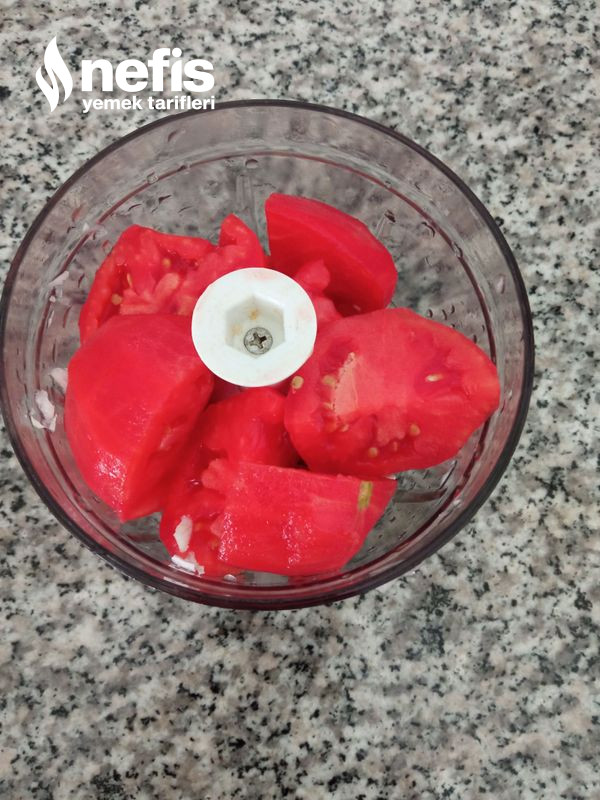 4. Soğan domates ve sarımsağımızı robottan geçirip bir kaba alalım.