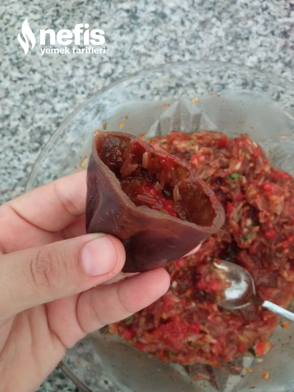 8. Ardından haşladığımız dolmalarımızı dolduralım ben işlerine tam doldurmuyorum bulgur şiştiği için siz tam da doldurabilirsiniz.