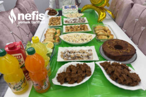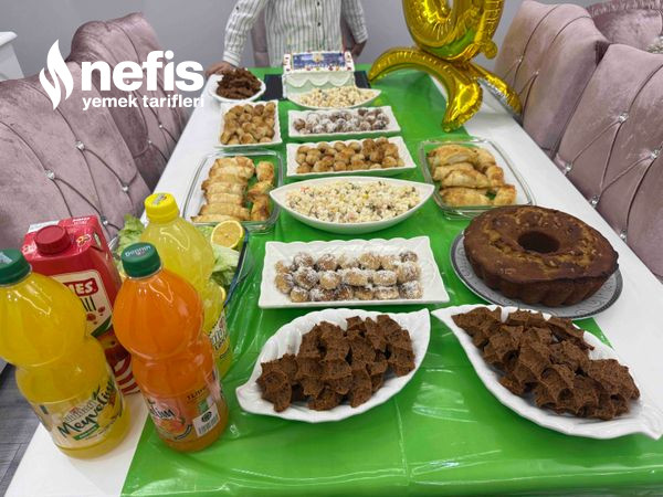 Doğum Günü Menüsü Pişmaniye kurabiye Çörekotlu tuzlu kurabiye Cevizli kek Buzluk böreği Makarna salatası Çiğköfte Yaş pasta İlginizi Çekebilir:Dev Bisküvi Pastası