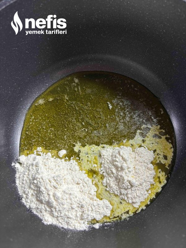 2. Eriyen tereyağına unu ek edelim. Biraz kavuralım.