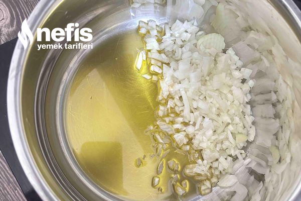 1. Soğanları ince doğrayıp, zeytinyağında kavuruyoruz.