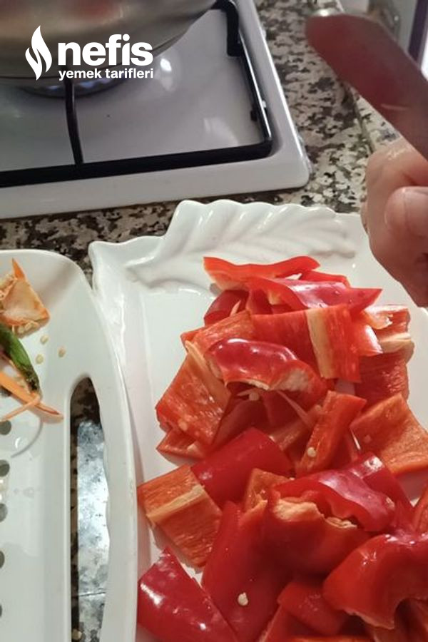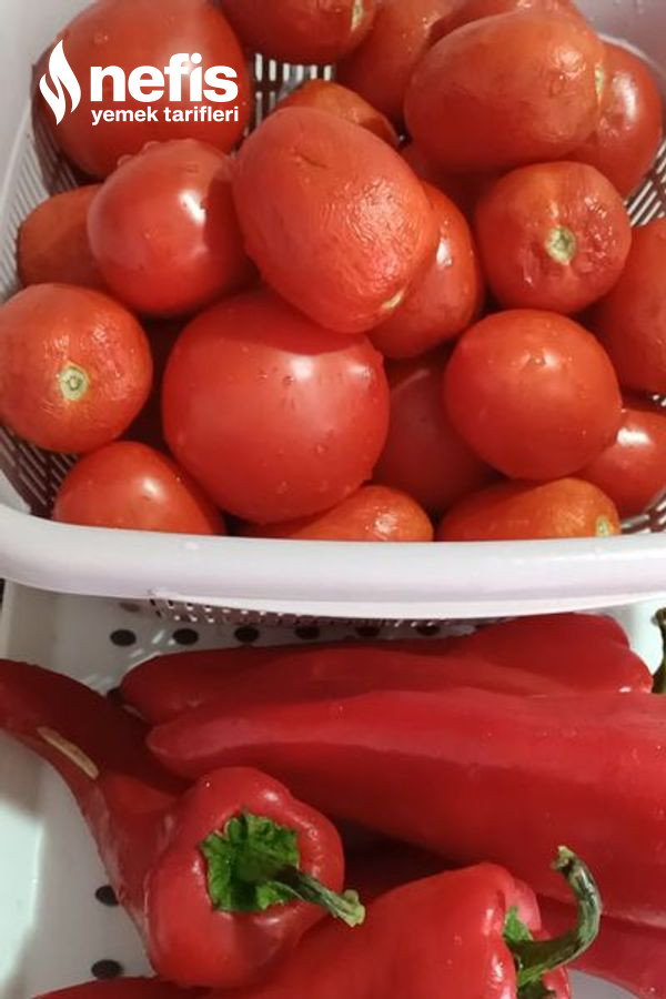 - Güzelce yıkadığımız salçalık domatesler ve kapya biberleri küçük küçük doğruyoruz.