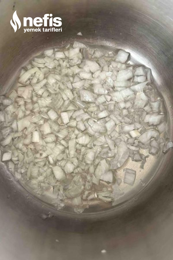- Soğanlar küçük küçük doğranır ve kavrulmaya bırakılır.