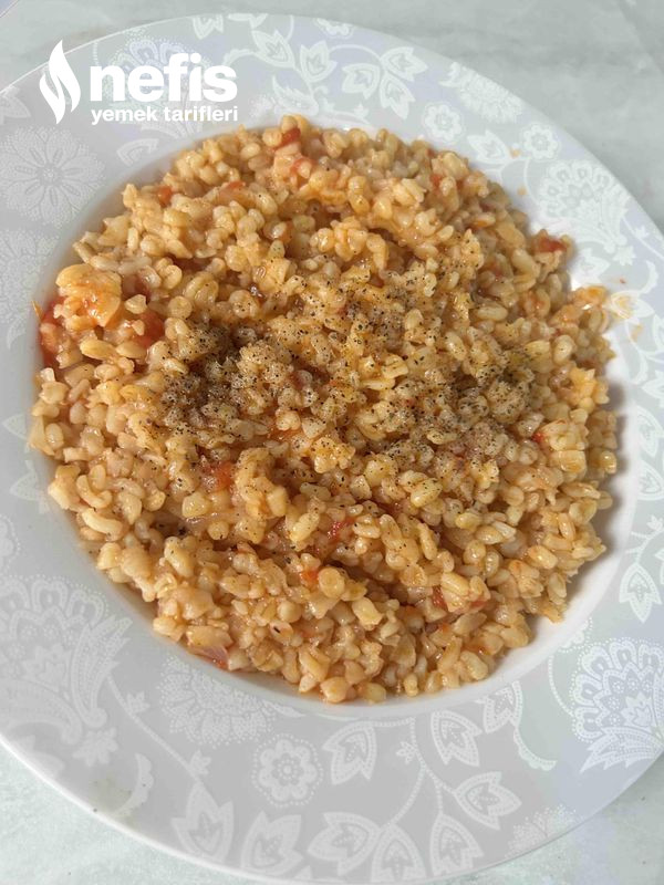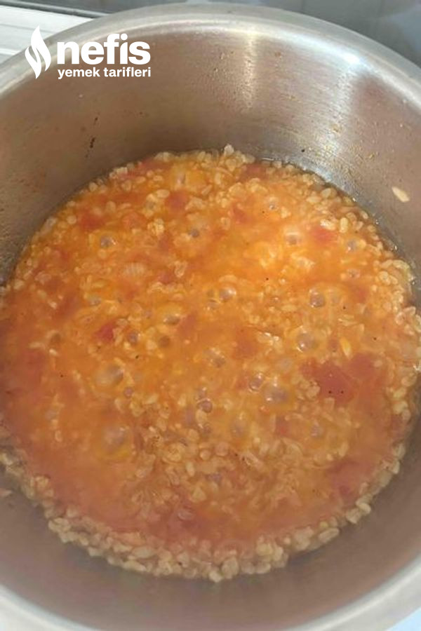 - 3 su bardağı su eklenir ve kaynamaya bırakılır( tanımda suyun fazla olma nedeni bulgurun iri olması ayrıyeten yemeğin daha sulu olması bulgurun da tam pişmiş istenmesi).