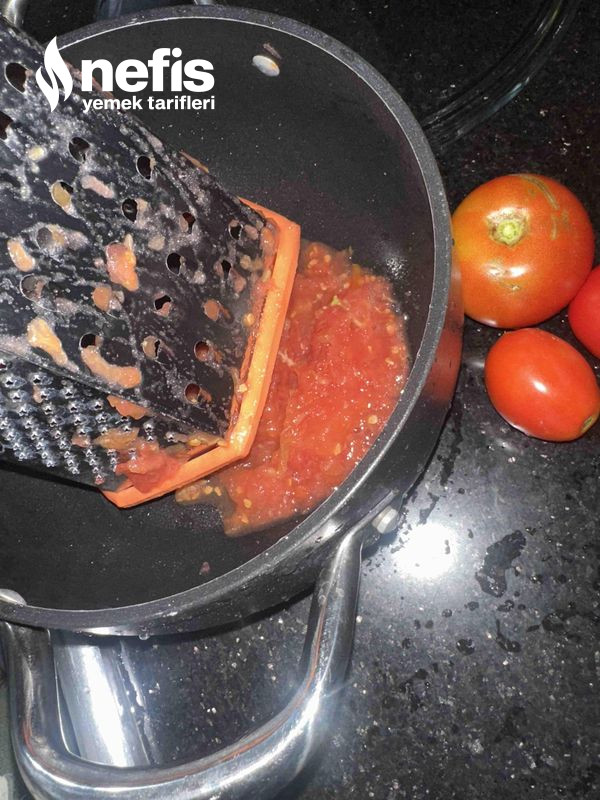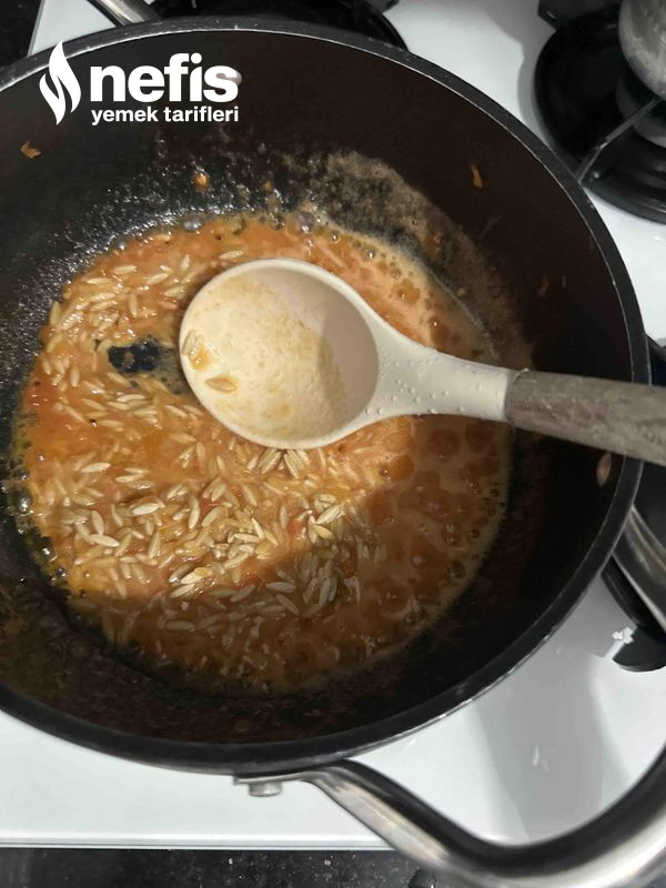 1. İlkin tenceremize bir tane domates rendesi ekleyip, kaynatalım domates suyunu çekene kadar bekletelim. Kısık ateşte olmasına dikkat edelim gerisinde iki yemek kaşığı tereyağı ekleyelim sonra şehriyemizi ekleyelim.