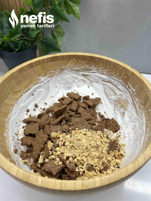 - Daha sonra bir paket bisküvileri elinizle parçalayıp ek edin başka malzemeleride ek edip karıştıralım.