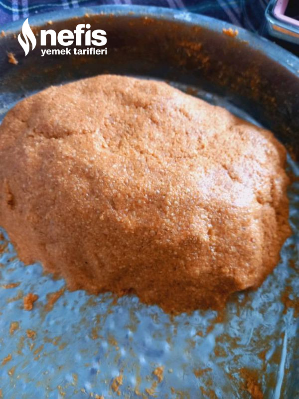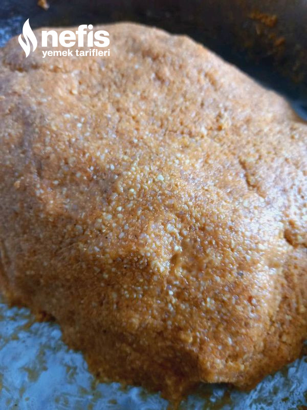 5. Dış kısmı için;Kiteli irmiği ve köftelik bulguru 2 su bardağı suyla ıslatıp ağzını kapatıp yarım saat dinlendirelim.