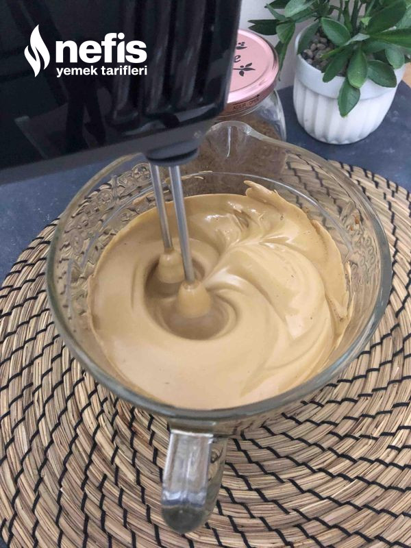 - Sıcak su, kahve ve şekeri uygun bi kapta evvel düşük ayarda sonra yükselterek mikserle çırpın.