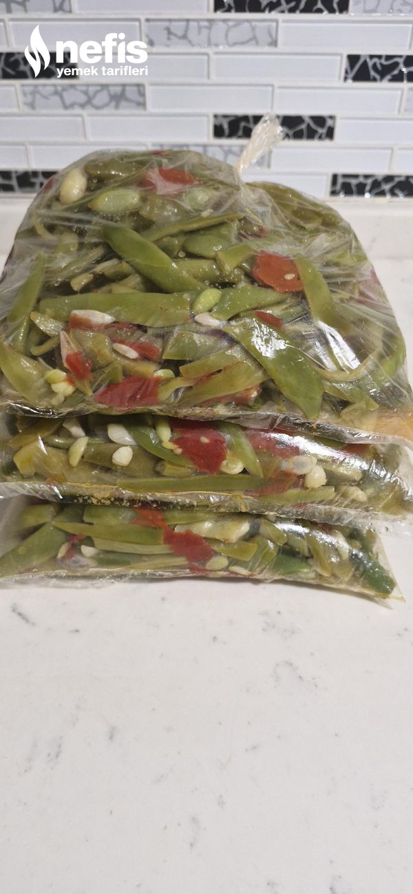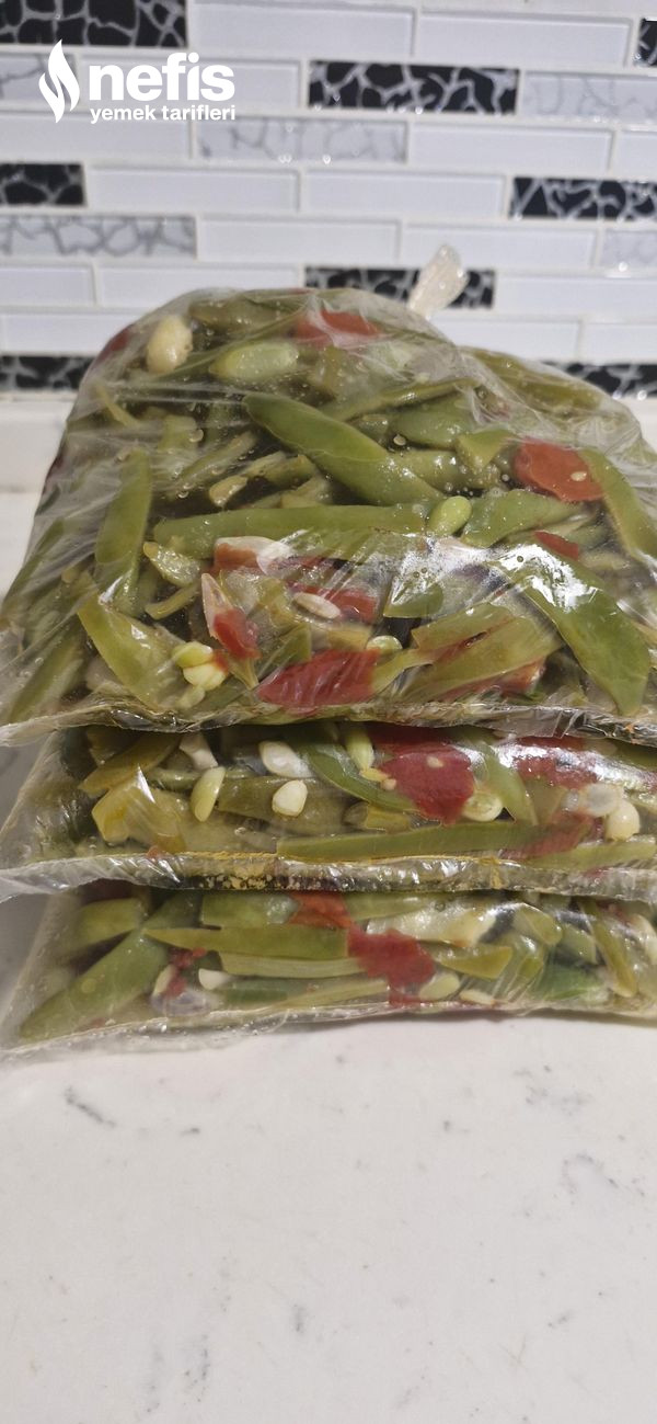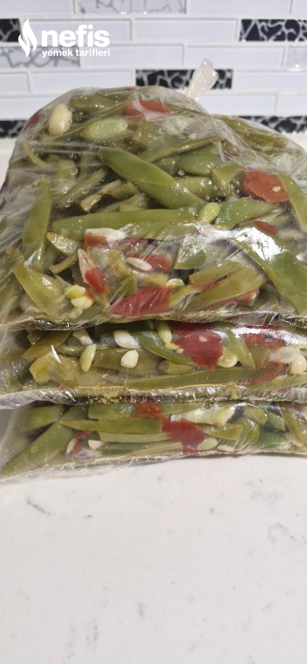 4. Soğuması bekletilir, soğuyan fasulye 3 eşit kesime bölünüp buzdolabı poşetlerine konulur ,dondurucuya koyulur.