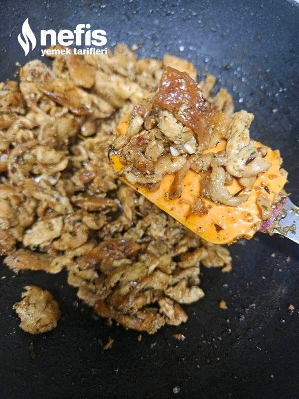 - Suyu çekilen tavuğun üzerine sıvı yağ eklenir biraz kavrulur.