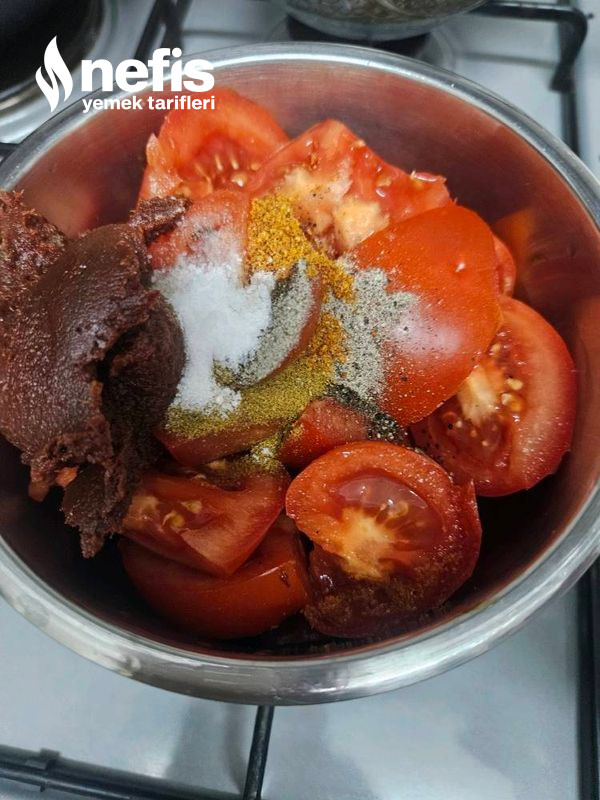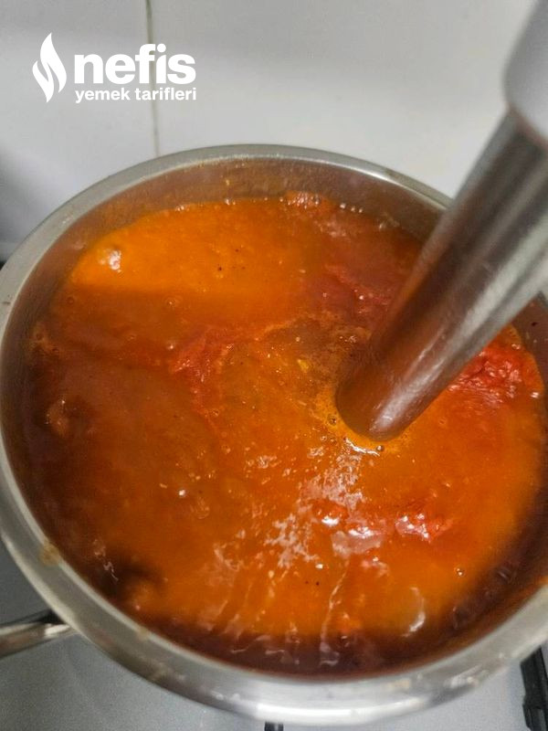 - Sosu için; domates, biber doğranır öbür gereçler ek edilip orta ateşte ocağa bırakılır kaynamaya başlayınca el blenderdan geçirilir 10 dk sora altı kapatır.