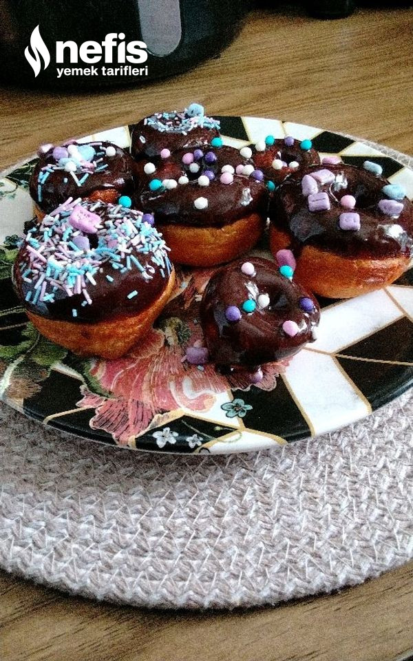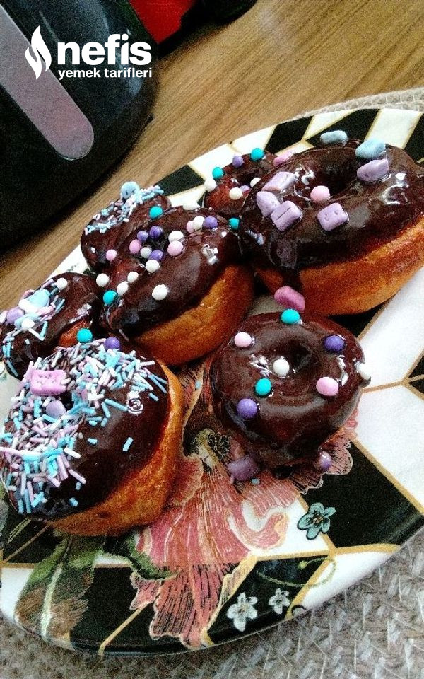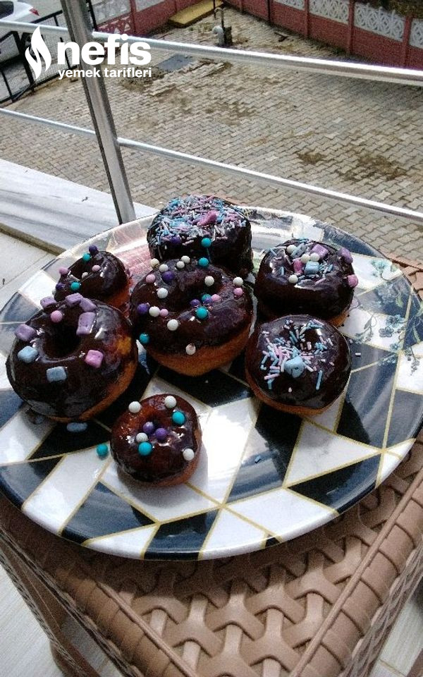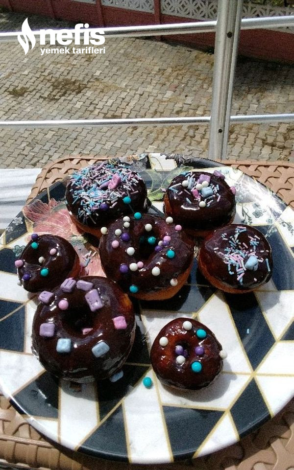 - Çikolata sosunu tarife nazaran hazırlayın donutları çikolata sosuna batırın üzerine şekerleme serpiştirin. Afiyet olsun.