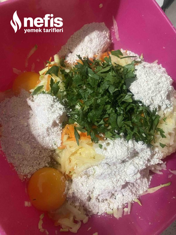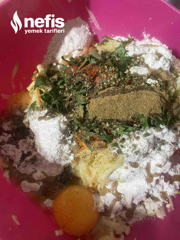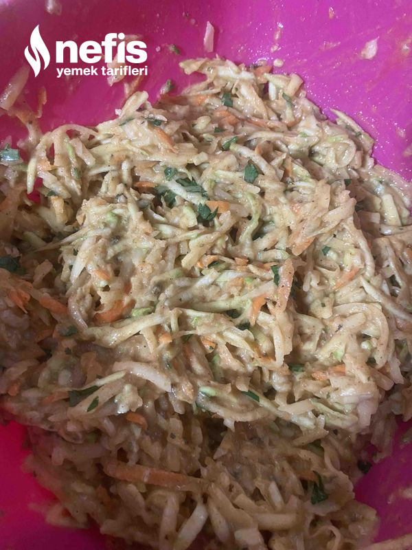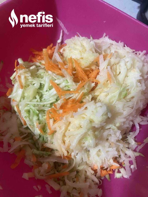 - Sebzelerimizi iri olan rende tarafından rendeliyoruz. Suyunu sıkıyoruz.