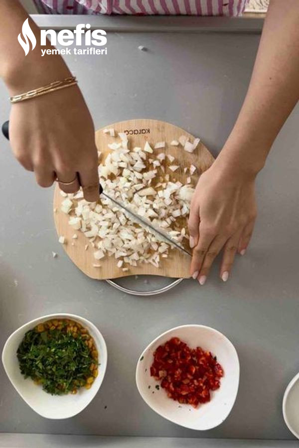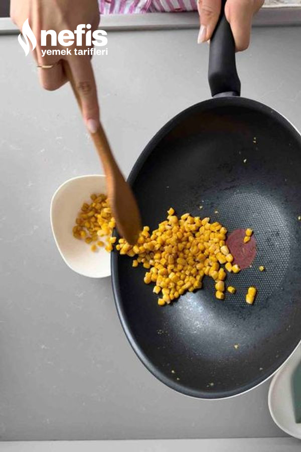 - Konservede suyunu süzdüğümüz mısırları çok az zeytinyağlı tavada kavurup ince ince doğradığımız maydanozlar ve az tuzla harmanlıyoruz.