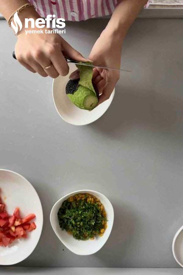 - Son olarak büyük küpler halinde doğradığımız avokado ve domates ile tabağımızı oluşturabiliriz. Afiyet olsun.