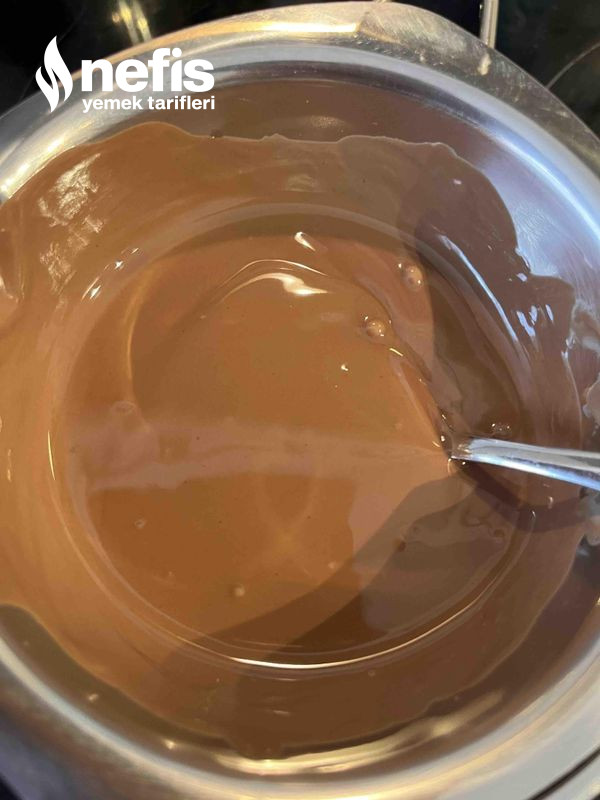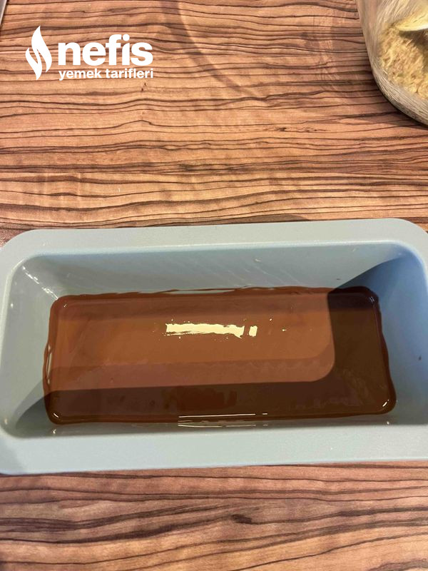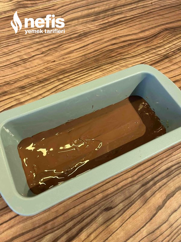 - Eritmiş olduğumuz çikolatanın yarısını kalıba dökelim ve çikolata donana kadar buz dolabında bekletelim.