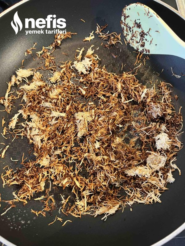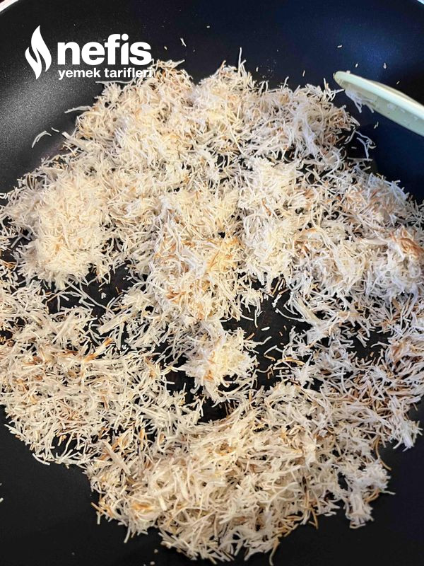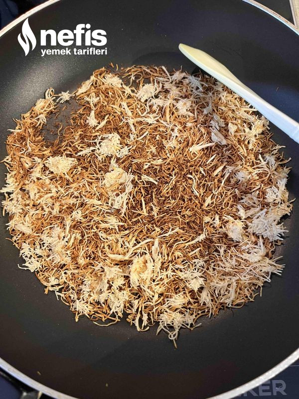 - İlk olarak bir tavaya kadayıfı alıp rengi hafif dönene kadar kavuralım.
