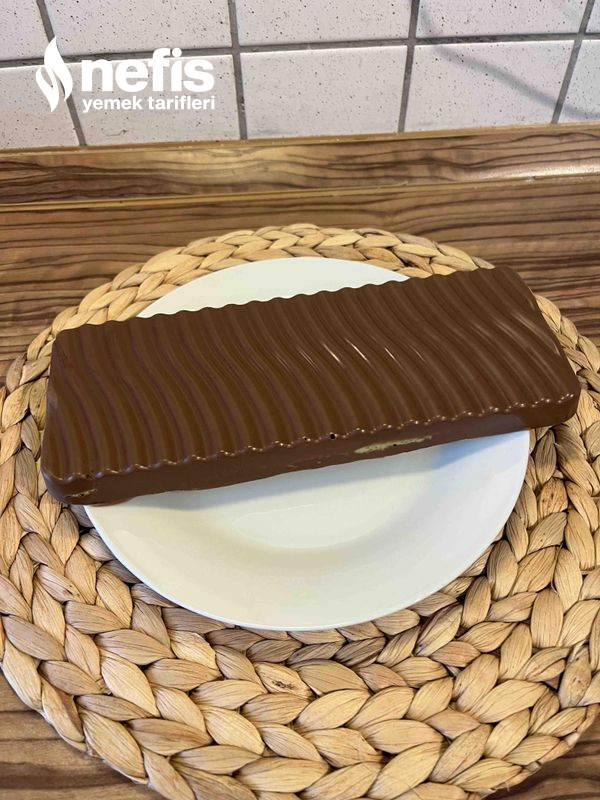 - Donan çikolatayı dolaptan alıp, kadayıflı krema karışımını üzerine yayalım.