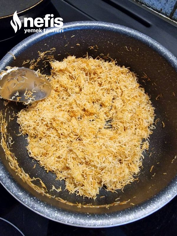 1. Öncelikle tereyağını eritin ve kısık ateşte kadayıfı kavuralım.