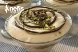 4. Ocaktan alıp biraz soğumaya bırakın ve fıstıklı kremayı ekleyin ve uygunca karıştırın.