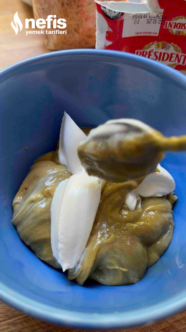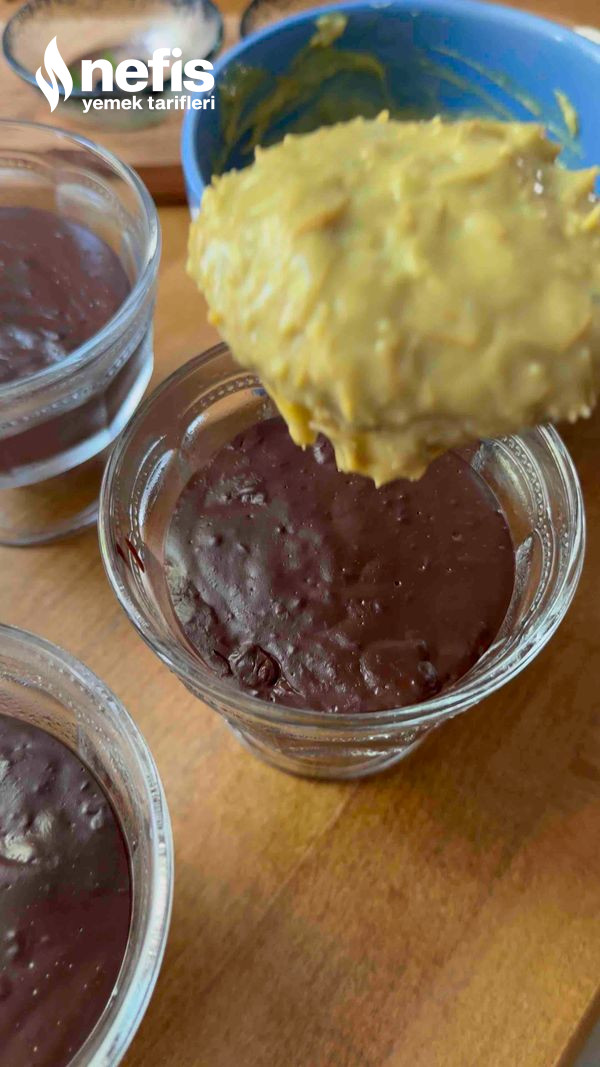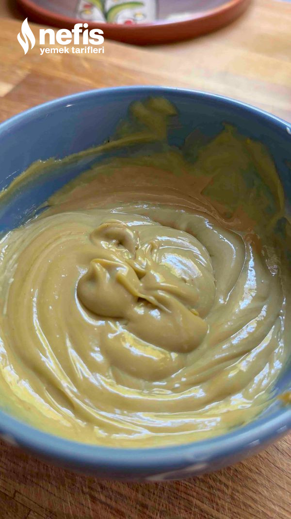 7. Diğer tarafta çukur bir kaba fıstık ezmesi ve krema boşaltılır.