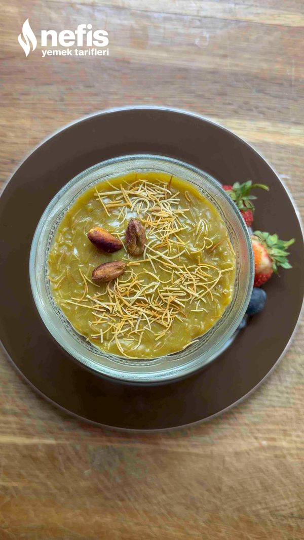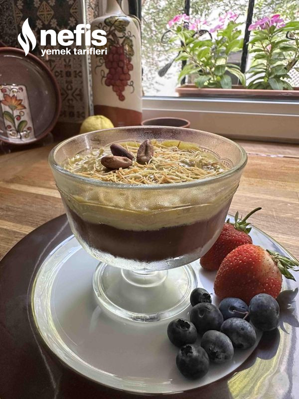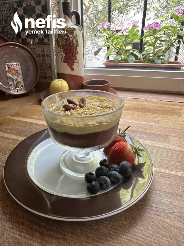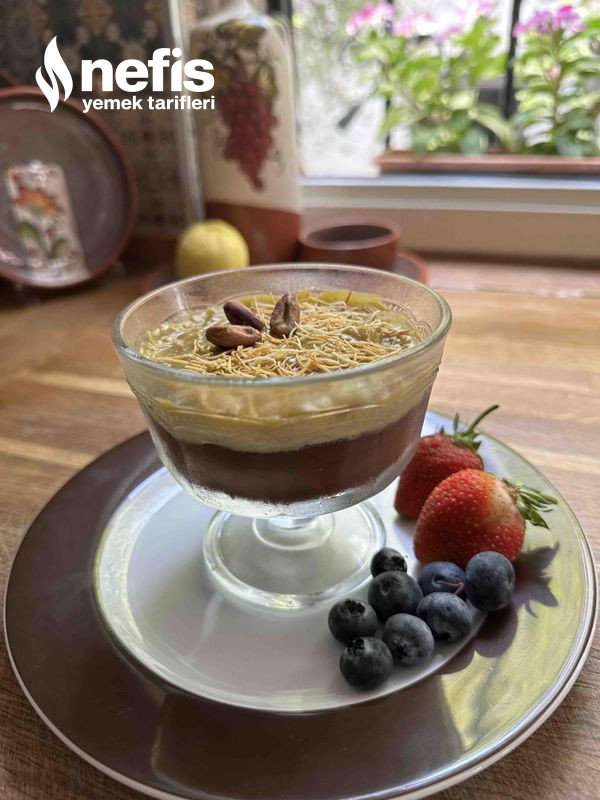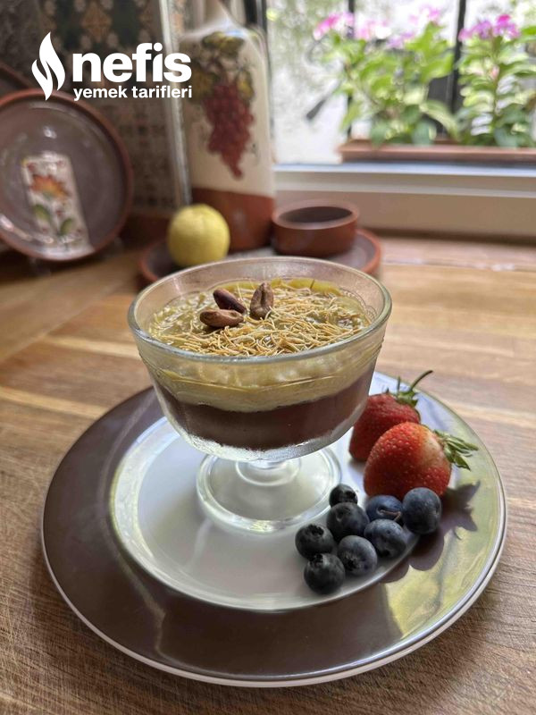8. İyice karıştırıldıktan sonra servis anında içine kadayıf eklenerek soğuyan supanglenin üzerine eklenir ve bir kaşık yardımıyla üzeri düzeltilir. 👍👍.