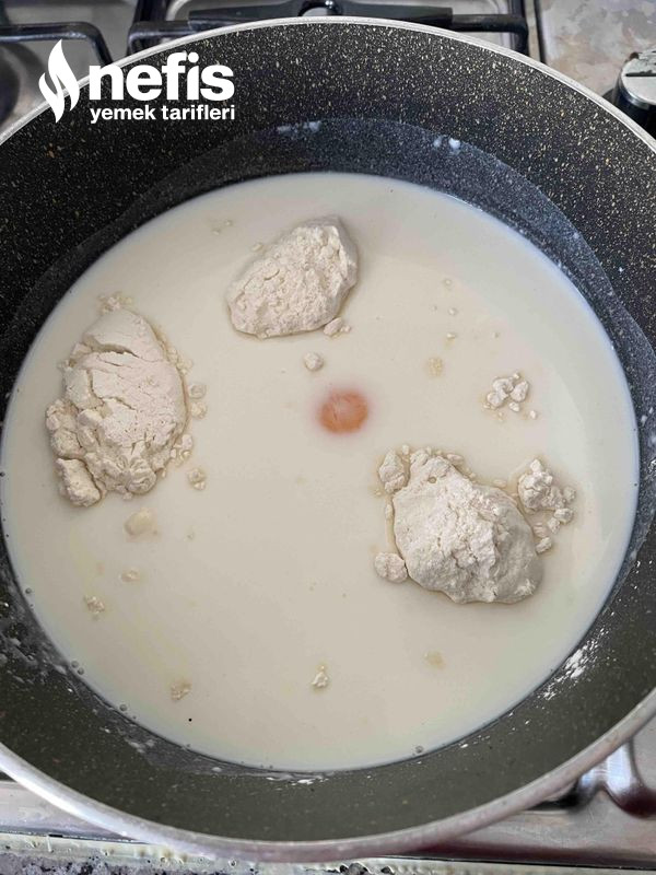 - Muhallebi için; kremşanti vanilya ve tereyağı hariç öbür bütün materyaller tencereye alıp karıştıralım. Tencereyi ocağa alıp karıştırarak kaynamaya bırakalım. Kaynayınca altını kısıp 1-2 dakika daha kaynatıp ocaktan alıp sıcakken içine vanilya ve tereyağı ekleyip süratlice karıştıralım tereyağı erisin daha sonra soğumaya bırakalım.