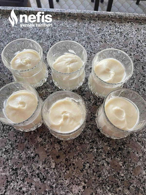 - Kupların üçte ikisi kadar muhallebi koyalım.