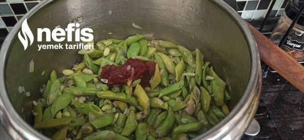 - Düdüklü tenceremize biraz yağ koyalım ısınsın içerisine soğanları ekleyelim birkaç dakika kavrulsun, akabinde fasulyeleri ekleyelim 5 dakika kadar fasulyeleri ortada karıştırarak kavuralım, rengi sararınca bir yemek kaşığı salçamızı ekleyelim, birkaç dakika kavurduktan sonra üzerine domateslerimizi ekleyelim.