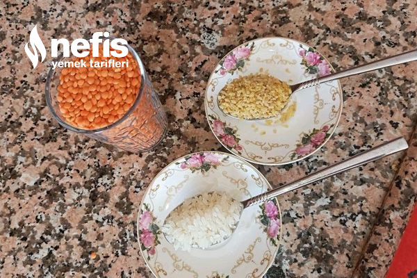 • 1 su bardağı kırmızı mercimek ( mercimek ve pirinç,bulgur bunları yıkayın )