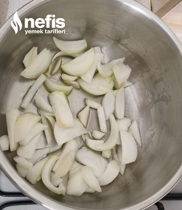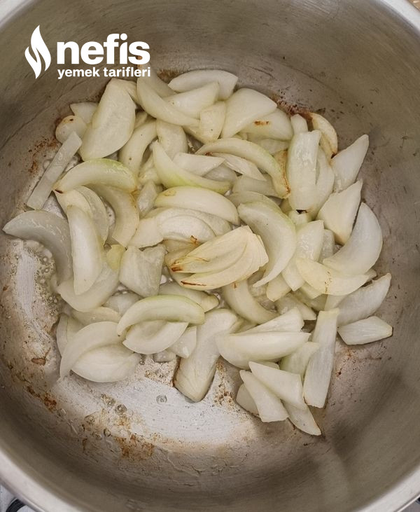 - Soğanları iri iri doğrayınız. Zeytinyağında kısık ateşte hafif pembeleşinceye kadar kavurunuz.
