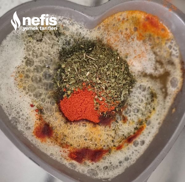 - Ayrı küçük bir tavada tereyağını eritip ocağın altını kapatınız ve kuru naneyle toz kırmızı biberi erimiş tereyağının üzerine ekleyip hafif karıştırınız.