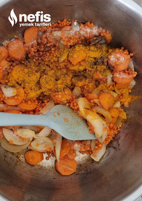 - Yıkadığınız mercimekleri, tuzu, karabiberi, zerdeçalı ekleyip biraz daha kavurunuz (damak tadınıza nazaran karabiber ve zerdeçal eklemeyebilirsiniz. Yeniden de çok lezzetli olacaktır. ).