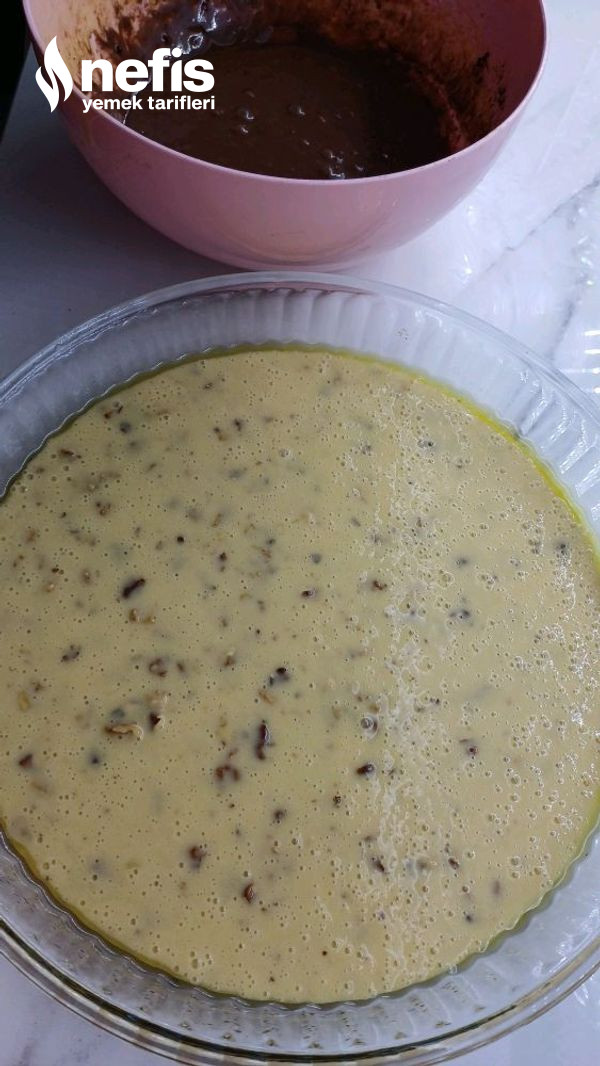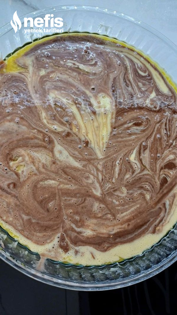 - Az birşey ayırdığımız sade keke 2 yemek kaşığı kakao ekleyip çırpalım.