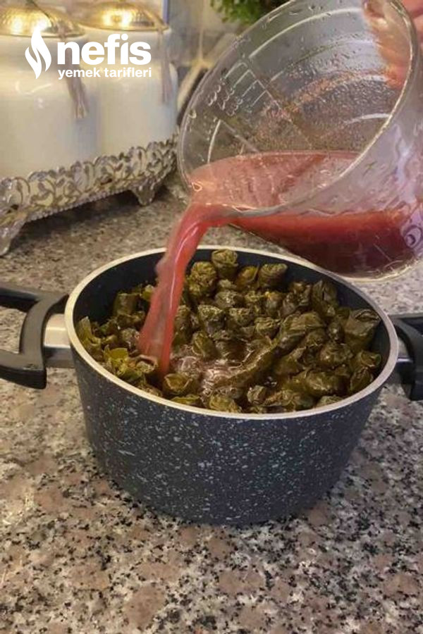 - Üzerine 1 su bardağı sıcak suyla ıslattığımız sumağı süzüp birde yağını koyup karıştıralım bu karışımı dolmaların üzerine dökelim.