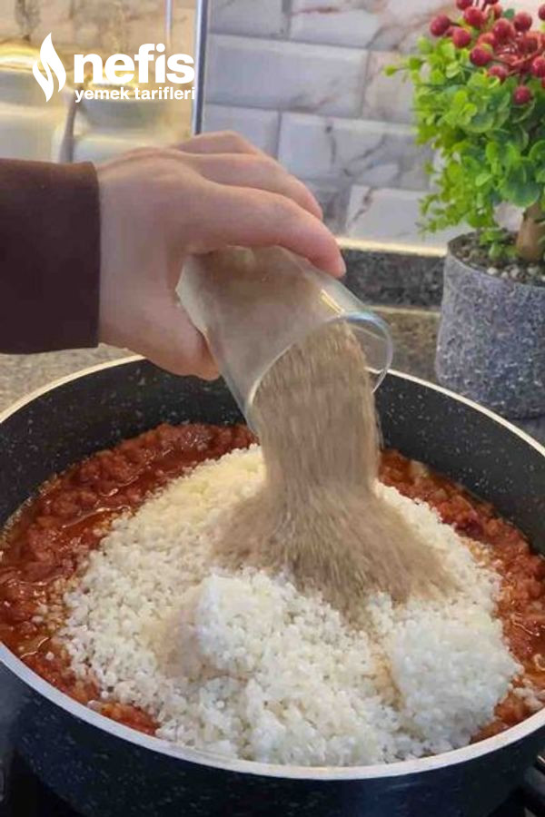 - Pirinç ve bulguruda ekleyip kavurmaya devam edelim.