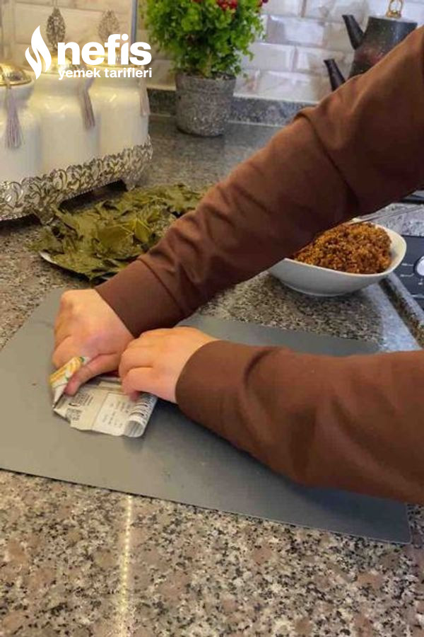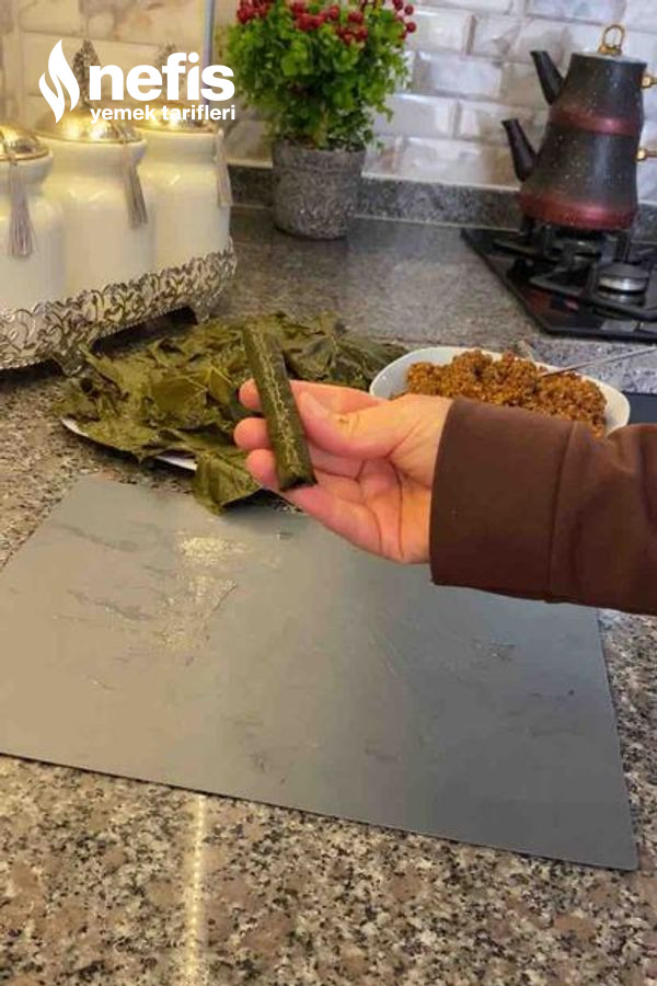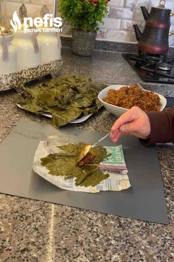 - Soğuyan harcımıza maydanoz ve dereotunu birde nar ekşisi ekleyip yapraklarımızla saralım.