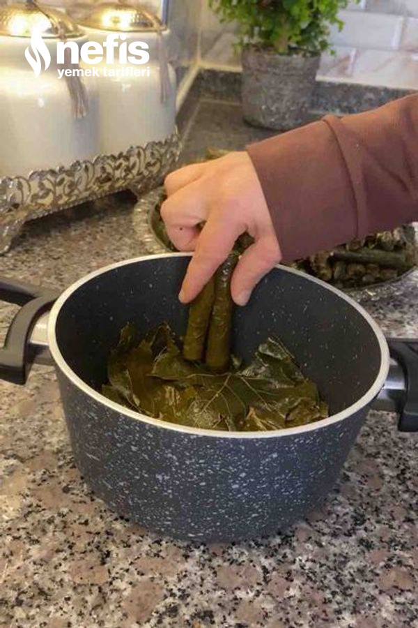 - Tenceremizin altına kalın yaprak dizerek sardığımız dolmaları dık koyalım.